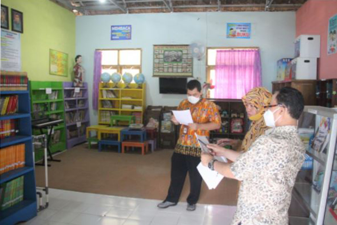 WONOSARI- Sumarto, S.Pd., M.M. selaku Kepala Bidang Sekolah Dasar Dinas Pendidikan, Pemuda, dan Olahraga (Disdikpora) Kabupaten Gunungkidul mendampingi